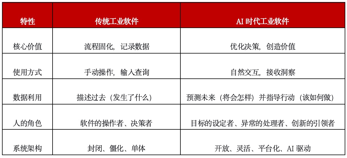 下图清晰地展示了工业软件从传统时代到AI时代的范式转移: