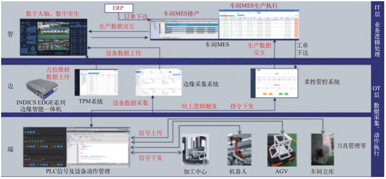 该系统实现云边协同,边缘云集成IT系统和设备设施运行的数据,中心云负责模型训练;构建数字孪生,实现感知、分析、决策和执行的智慧管理,构建云制造+边缘制造的新模式。