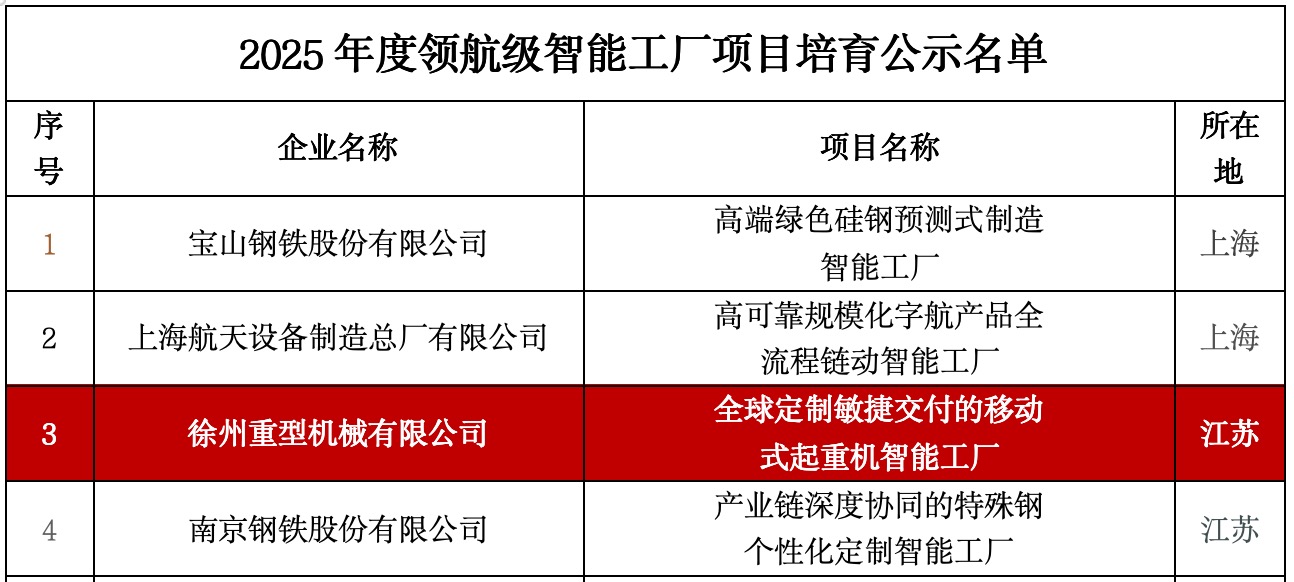 在全球工程机械产业向“高端定制+敏捷响应”转型的浪潮中,徐州重型机械有限公司(以下简称“徐工重型”)打造的“全球定制敏捷交付的移动式起重机智能工厂”,以2025年度工信部领航级智能工厂培育项目的身份,成为离散制造智能化转型的标杆范本。这座融合5G全连接、数字孪生与全球协同能力的智能工厂,不仅支撑徐工起重机连续15年全球销量第一,更重构了“多品种、小批量、高定制”的制造范式。其成长轨迹根植于近三十年的数字化积淀,更是对卓越级、领航级智能工厂标准的精准对标与超越实践。