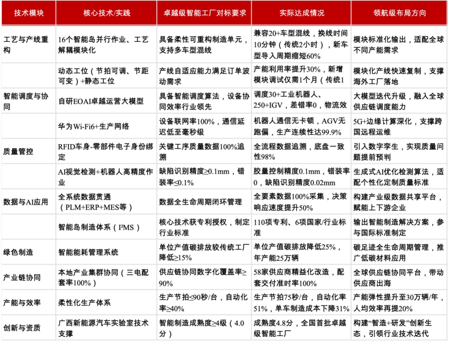 表 五菱岛式智能工厂核心技术与对标指标对照表