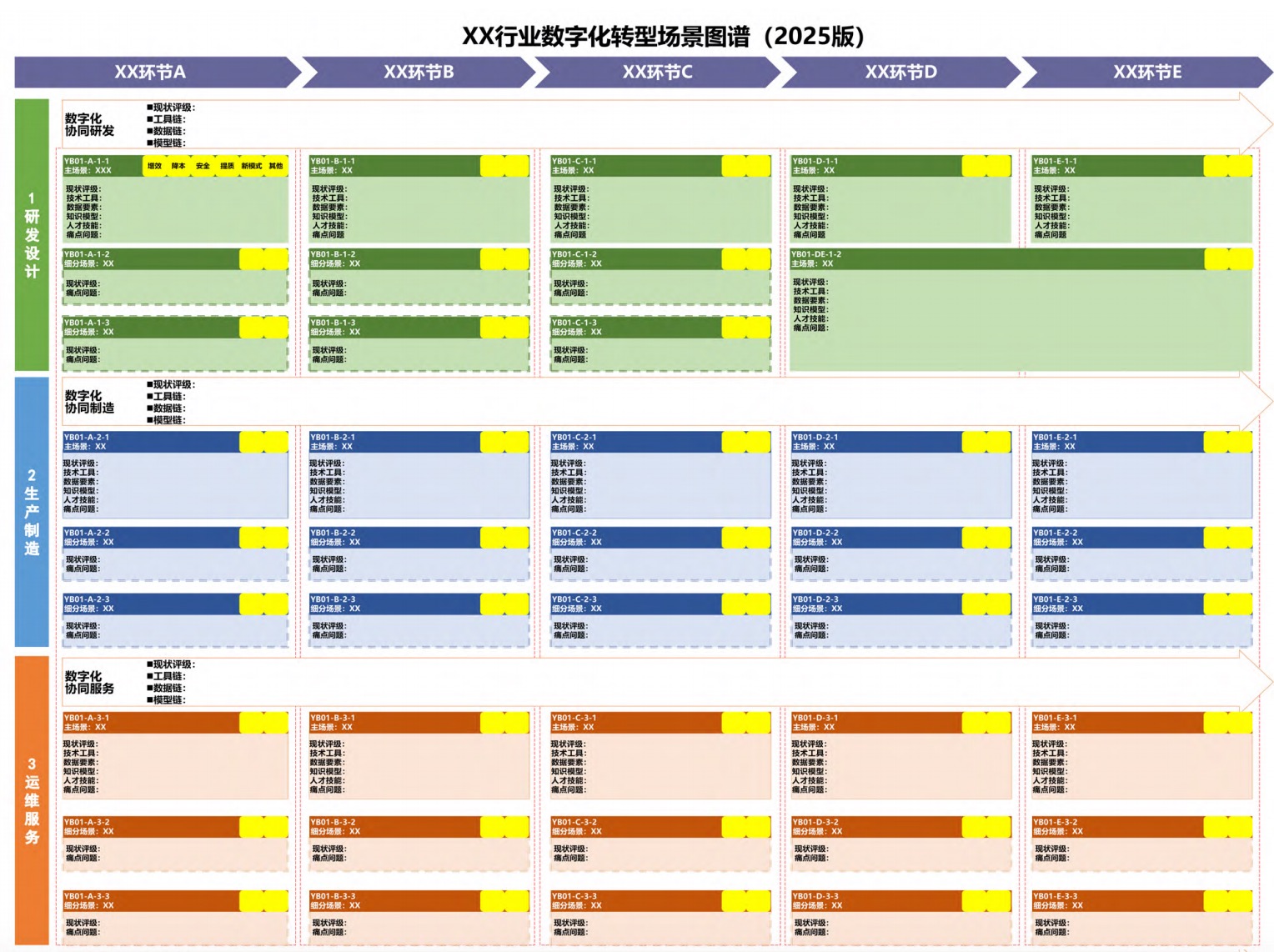 基于上述“业务活动+产品全生命周期”视角,能够精准定位场景在制造业整个生产经营过程中所处的位置和业务边界,以“解剖麻雀”的方式把制造业整体转型问题分解为一个个标准化的场景转型问题。