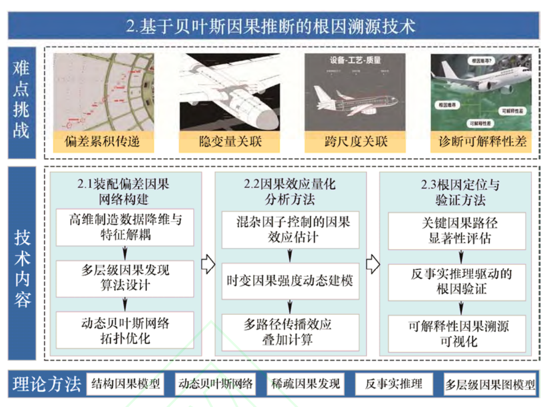 为破解装配偏差多层级耦合传递的“黑箱”问题,提出基于贝叶斯结构因果模型的根因诊断方法。通过构建装配偏差传播的有向无环图,量化工装形变、定位误差、铆接力波动等潜在诱因对最终装配质量的贡献度。结合干预计算(Do-Calculus)理论实施反事实推理,识别关键路径上的敏感性参数,建立偏差源与质量缺陷间的动态因果链,为工艺调控提供可追溯的决策依据。