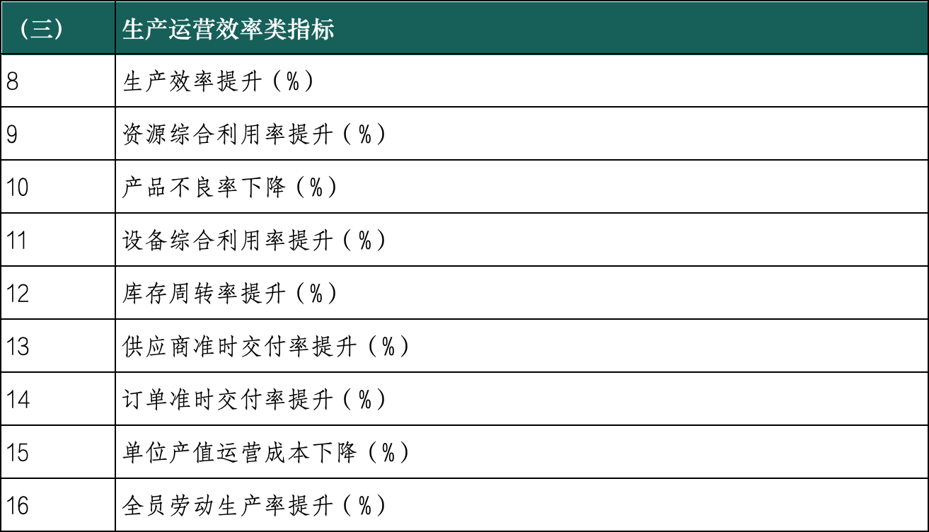 这五类指标分别聚焦绿色制造与产业协同,其指标设计与计算方法充分体现了智能制造“绿色化、生态化”的发展趋势,为企业评估智能制造的可持续发展价值与产业辐射效应提供了科学依据。