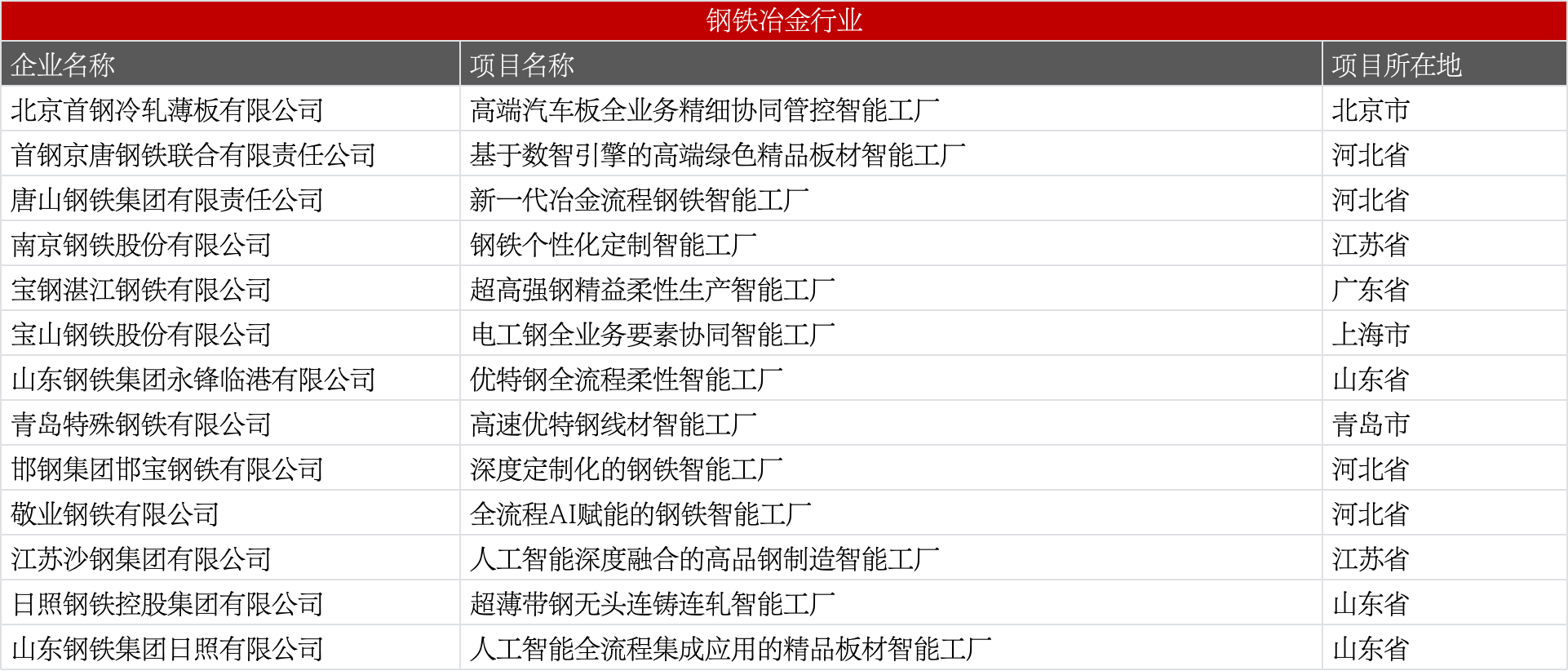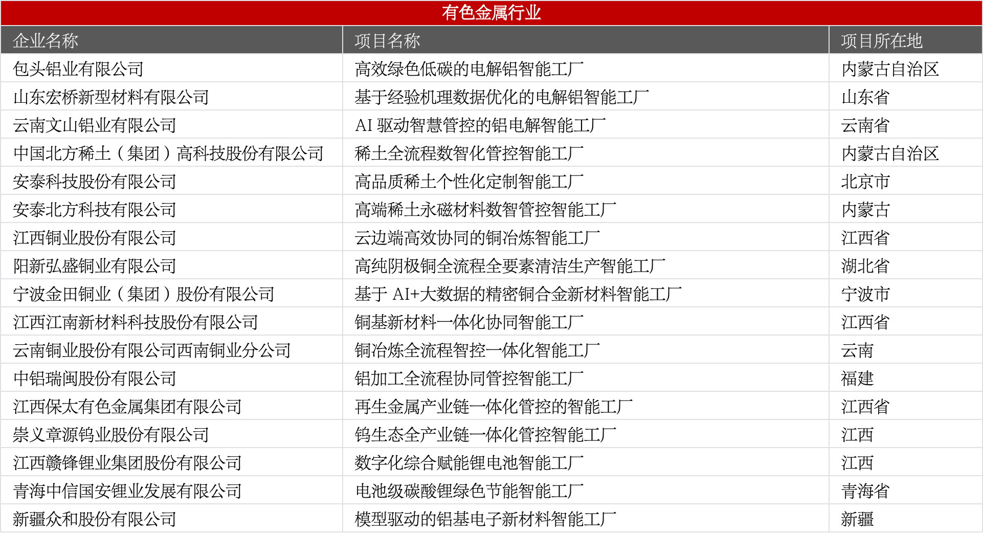 涵盖电解铝、铜冶炼、稀土、锂业、钨业等,聚焦绿色低碳、全流程数智管控、高端新材料。