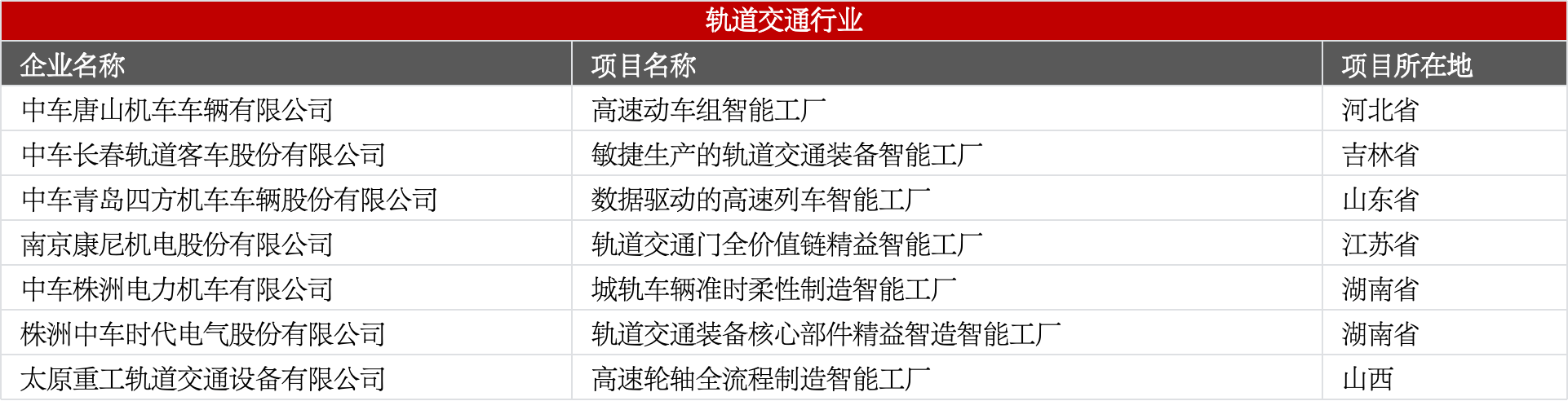 涵盖高铁、城轨车辆、轨道交通零部件等,聚焦敏捷生产、全价值链精益管理。