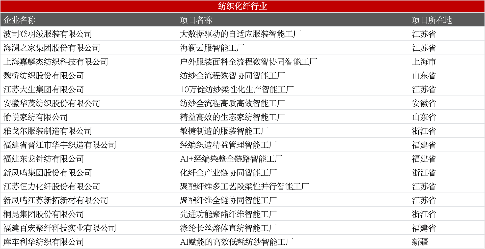 含纺纱、织布、化纤、家纺、服装等,聚焦全流程数智协同、柔性生产、高端材料制造。