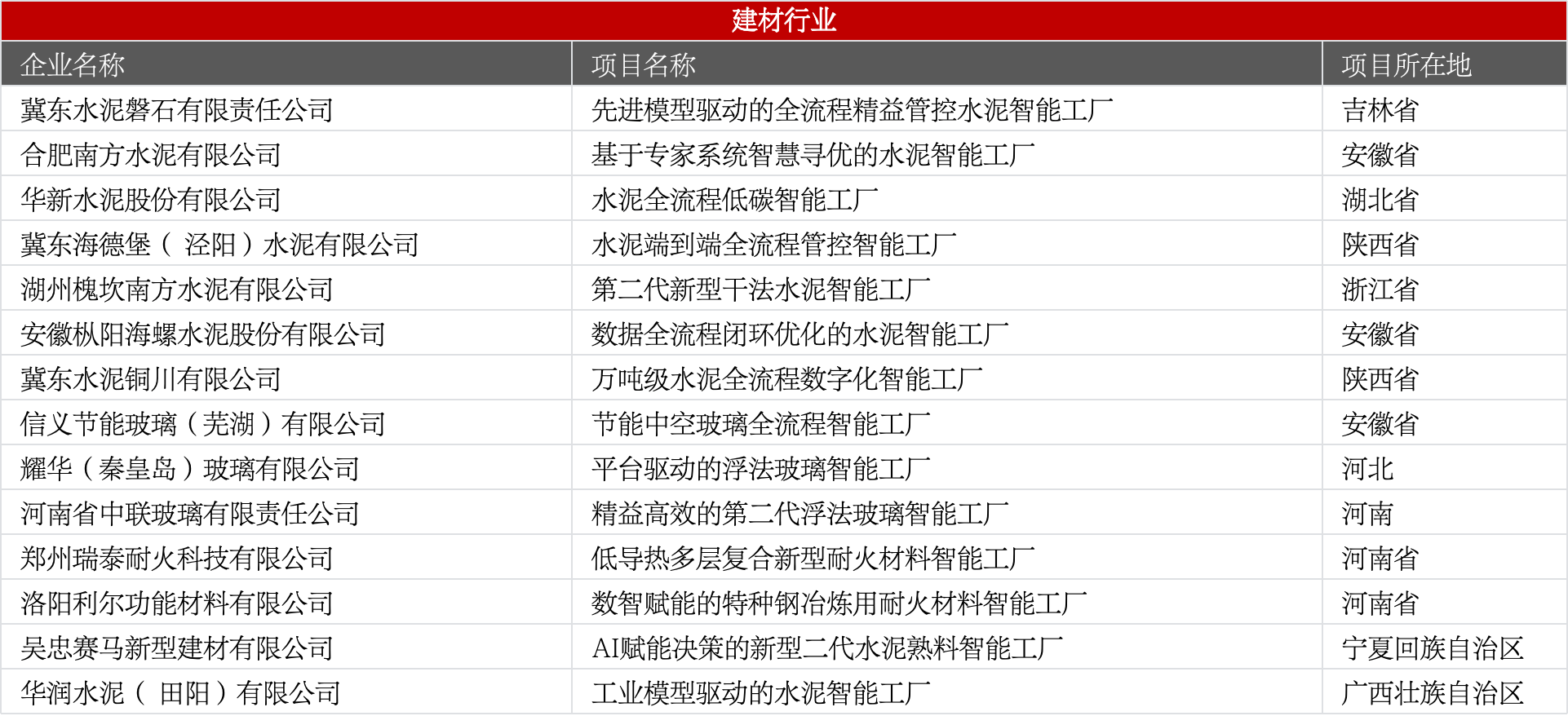 包含水泥、玻璃、耐火材料、新型建材等,侧重全流程精益管控、AI寻优、绿色低碳。