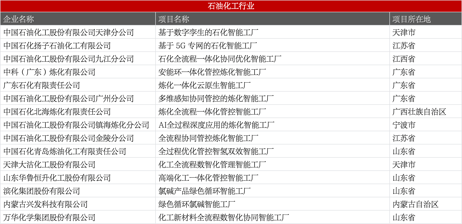 包含炼化、化工新材料、氯碱、煤化工等,核心为数字孪生、全流程协同、绿色循环制造。
