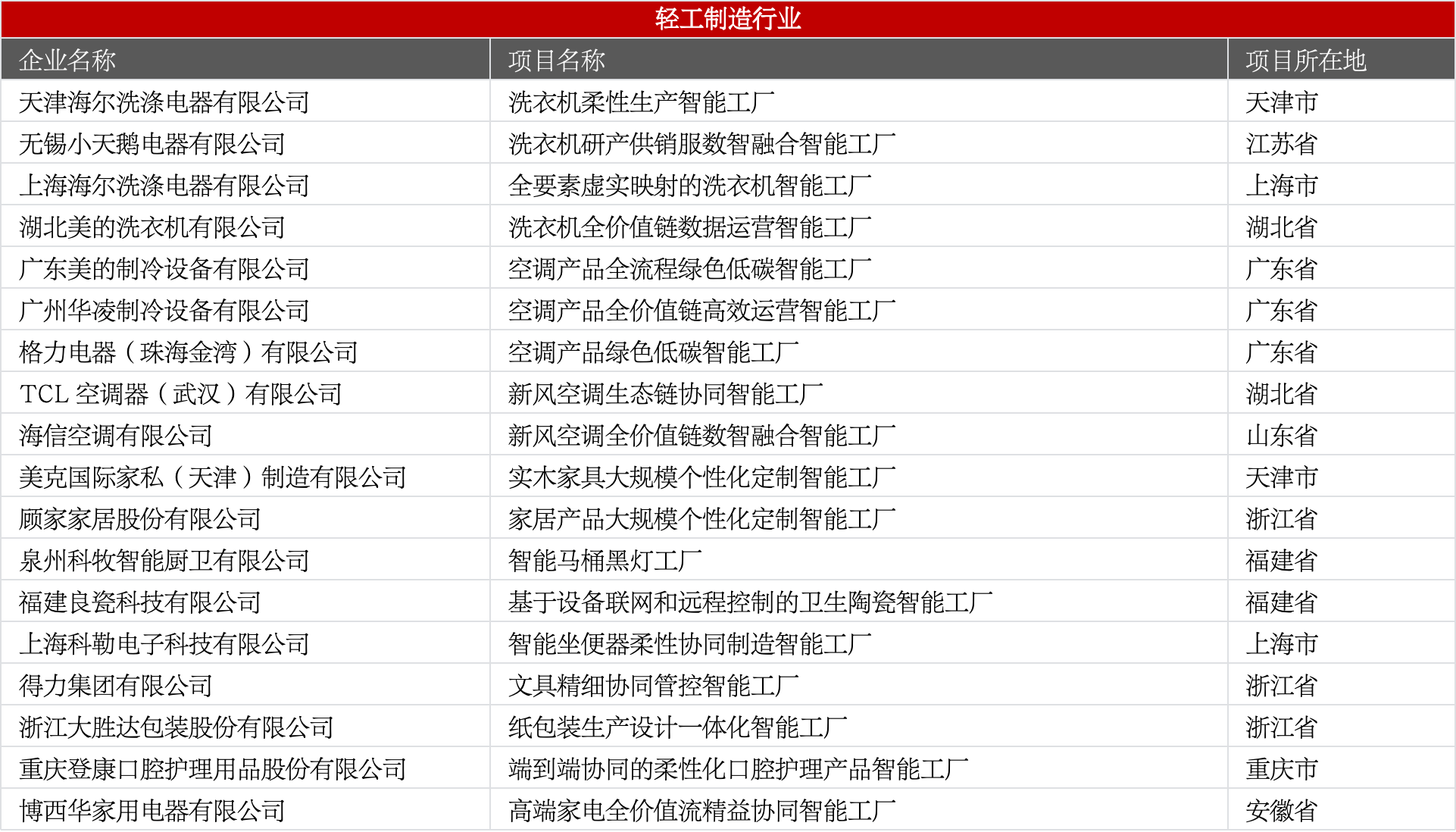 含家电、家具、厨卫、文具、包装、口腔护理等,突出柔性生产、大规模个性化定制、绿智融合。