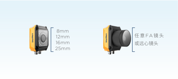 为解决不同读码场景带来的应用难题,VS2000P全新设计镜头接口,提供M、C接口不同镜头选择,其中M接口涵盖8mm、12mm、16mm、25mm焦距,结合灵活的C接口镜头,可实现100-2000mm超远工作范围覆盖。