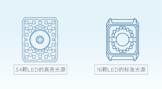 VS2000P采用模块化光源设计,提供16颗LED灯的标准光源模块与34颗LED灯的高亮光源模块选择,可轻松适配各种复杂工业场景和严苛环境的变化,减少外部照明成本的同时,保证读码的稳定性和识别率。