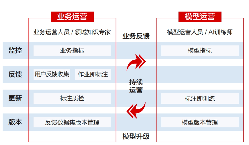 具体运营实施需要业务运营和模型运营的协同配合——通过业务反馈推动模型升级,通过模型优化提升业务效果,从而实现持续改进。