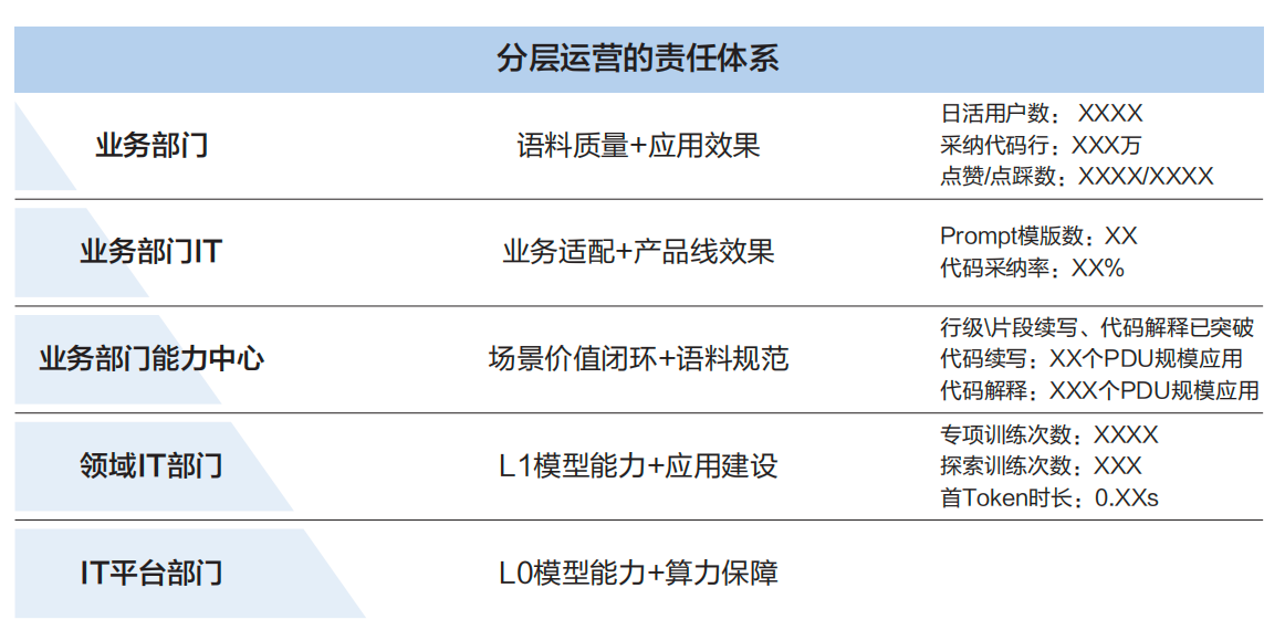 组织变革的核心目标在于提升作业效率与质量,而不是为了减员。企业应致力于营造“人人懂AI、人人用AI”的良好氛围,推动组织与人才能力的全面升级。通过分层分级设定目标,构建高效的AI训战体系: