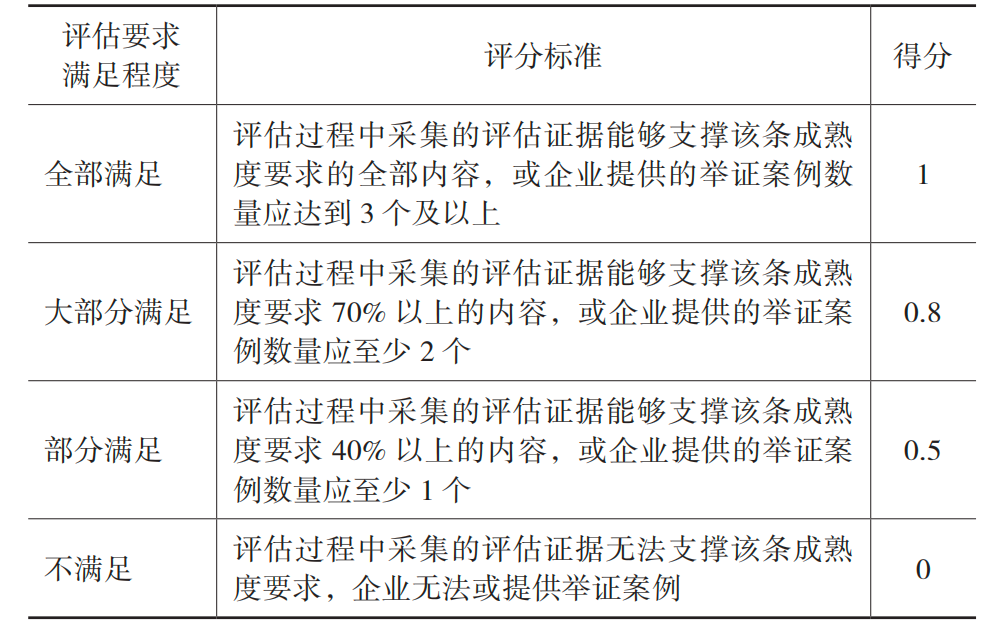 1)在对应评估等级下,研究团队依据采集到的证据对每条评估要求进行打分(见表3)。