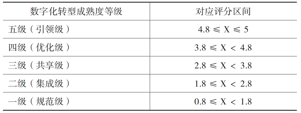 表4 成熟度评分和数字化转型成熟度等级对应关系