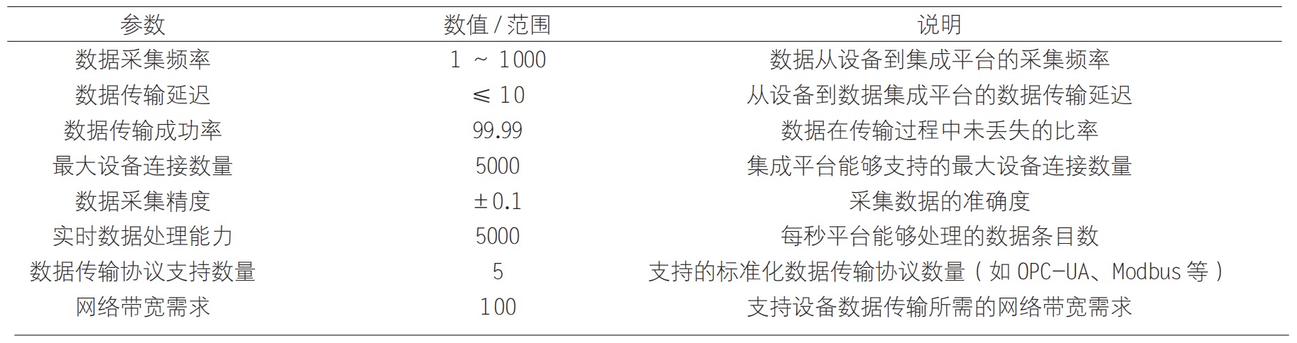 表 2 智能工厂设备数据标准化集成参数与传输性能