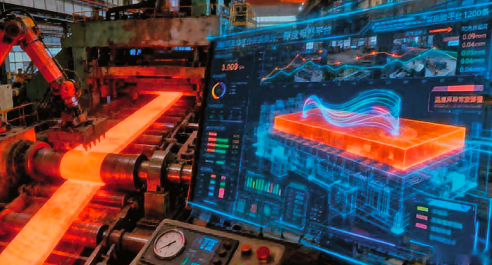 轧钢厂数字孪生模型应用于生产预测和优化中,可对关键工序进行动态仿真。以某热轧线为例,模型预测板材厚度偏差的平均误差为0.048 mm,厚度偏差超过 0.05 mm 的批次数量由优化前的12 批减少至3 批,预测准确率超过90%,验证了模型在生产过程控制和质量管理中的有效性。