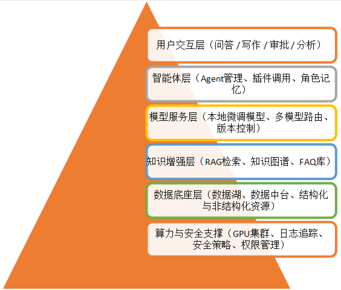 部分企业已扩展为六层架构,引入数据底座层与算力支撑层,并探索“边缘小模型+云端大模型”的混合部署模式。