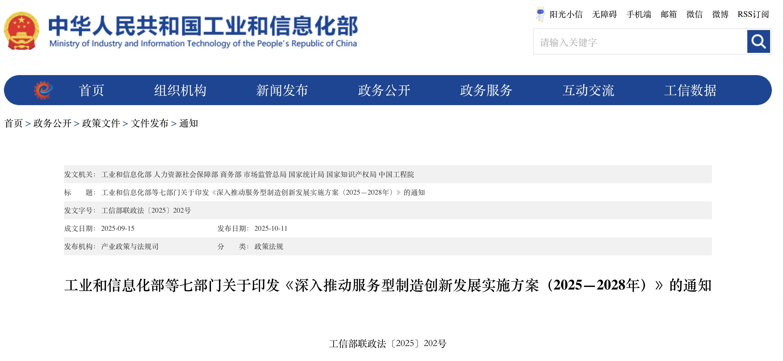 现将《深入推动服务型制造创新发展实施方案(2025—2028年)》印发给你们,请结合实际认真抓好落实。