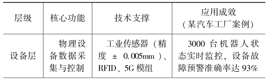 数字化工厂的技术架构呈金字塔式分层设计,各层功能与典型应用见表1。