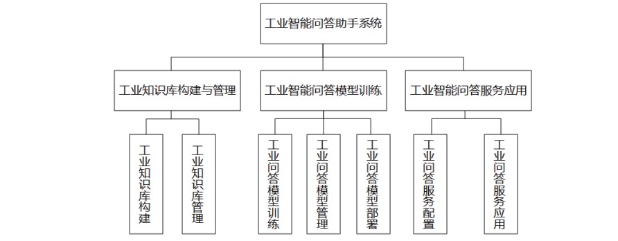 工业智能问答助手软件主要由工业知识库构建与管理、工业智能问答模型训练以及工业知识问答服务应用3部分模块组成。