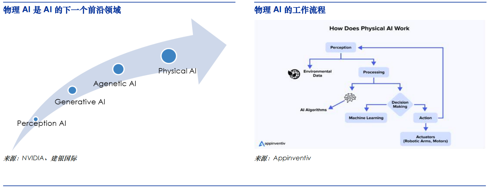 传统AI的价值在于提升数字领域的效率,解决“信息如何处理”的问题;而物理AI的价值则在于打通数实壁垒,解决“如何在现实世界行动”的问题,这也让AI的应用边界从互联网、金融、传媒等数字领域,延伸至制造、交通、能源、物流等实体经济核心板块。