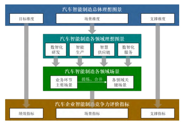 评价体系可用于整车企业和规模化供应商开展量化评价,以明确自身智能制造总体水平与各领域优劣势,从而制定或调整智能制造发展战略及落地措施。