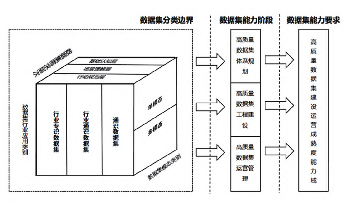 本文创新提出高质量数据集三维分类矩阵下的“分阶段-分域-分级”建设运营能力成熟度模型,并结合动态评估机制,助力数据要素从“无序积累”向“高质量供给”转型,为人工智能产业从技术突破向产业化、高质量发展转型筑牢关键数据根基。