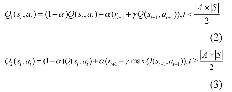 α为学习率,γ为学习折扣率。t 表示当前迭代次数,S 表示意外环境状态总数, A 表示行动次数。