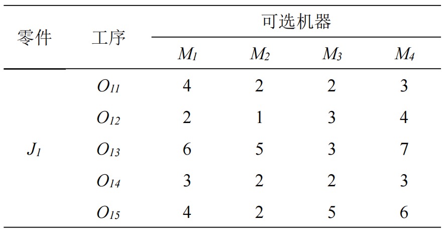 对在柔性作业车间调度问题中,任务由一系列工序组成,每台机器所需处理的工序事固定的。对每一道工序,都有一组具有不同处理时间的机器可用。问题描述涉及的变量符号定义如下: