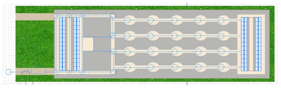 进入货架预备加工、流水线加工、加工完毕进入货架储存,其中我们将主要针对流水线加工环节进行设计。加工流程共计 5 个步骤,有四条流水线可供选择。