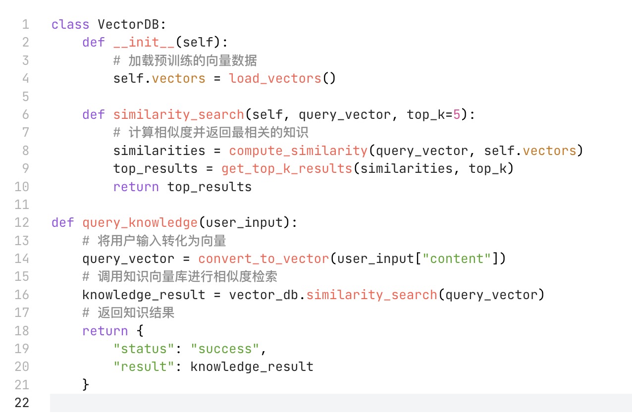 2.知识检索器功能:用于将原始知识文件转换成向量文件,并处理知识查询请求,调用知识向量库进行相似度检索。
