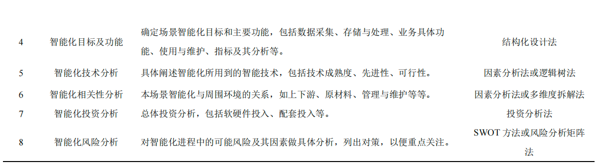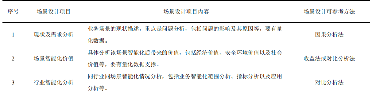 场景设计主要内容见表1,每一项内容都应该基于一定的方法进行分析与设计。采用特定方法进行场景设计,不仅能使分析数据可靠,分析过程更具有逻辑性,同时,又能扩展分析者思维能力,使整个智能化场景设计更扎实、更具操作性。
