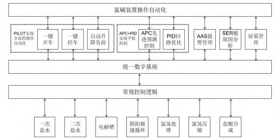 (3)智能技术。操作自动化场景设计需要考虑采用什么技术或者什么样的组合技术来实现。本氯碱装置操作自动化采用的关键技术是操作规程自动化技术,主要有操作导航(PILOT)软件,先进控制(APC)软件、报警管理软件(AAS)以及PID回路优化软件等。