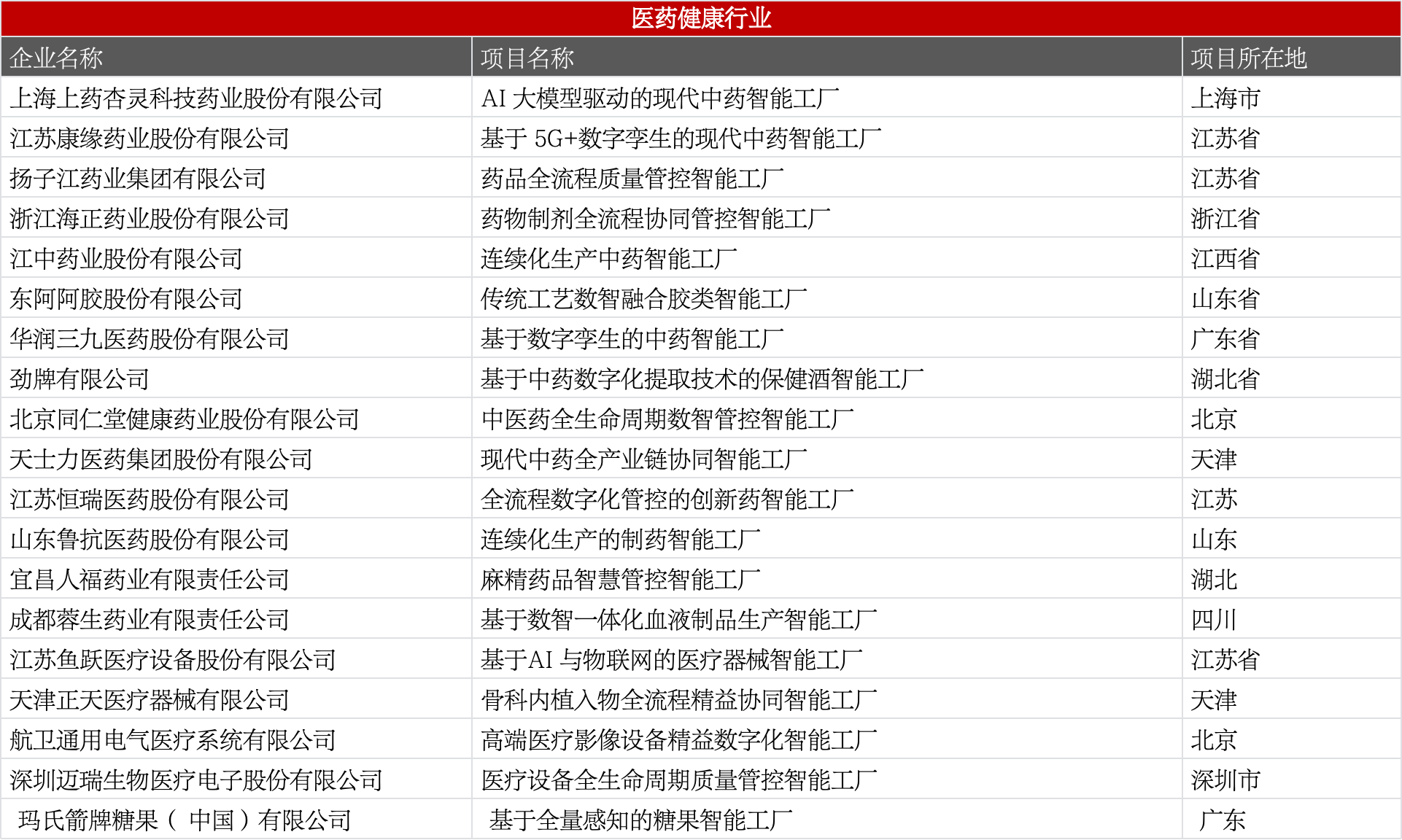 包含化药、中药、生物制药、医疗器械、血液制品等,聚焦质量管控、连续化生产、AI/数字孪生应用。