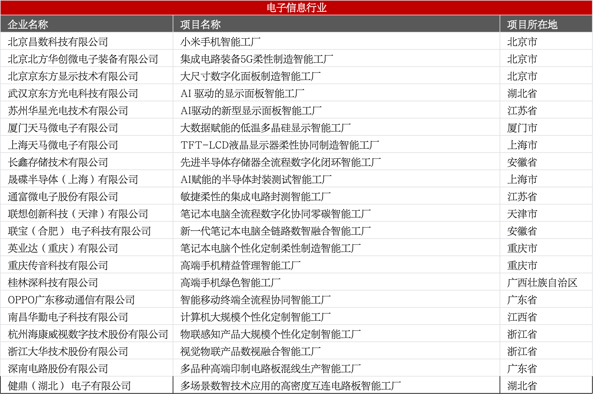 包含半导体、显示面板、消费电子(手机/电脑/家电)、电子元器件、通信设备等领域,聚焦数字化、柔性化、智能化制造。