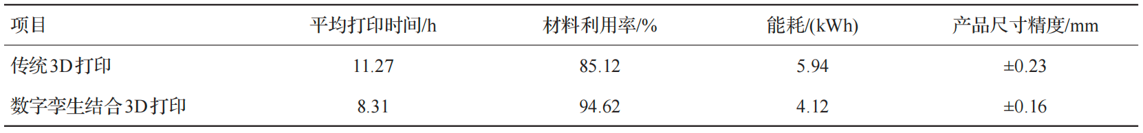 表2 传统3D打印与数字孪生结合3D打印应用效果对比