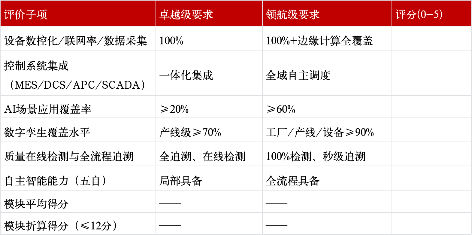 评分规则:0–5分制(0=未开展,1=初始,2=规范,3=集成,4=优化,5=引领)