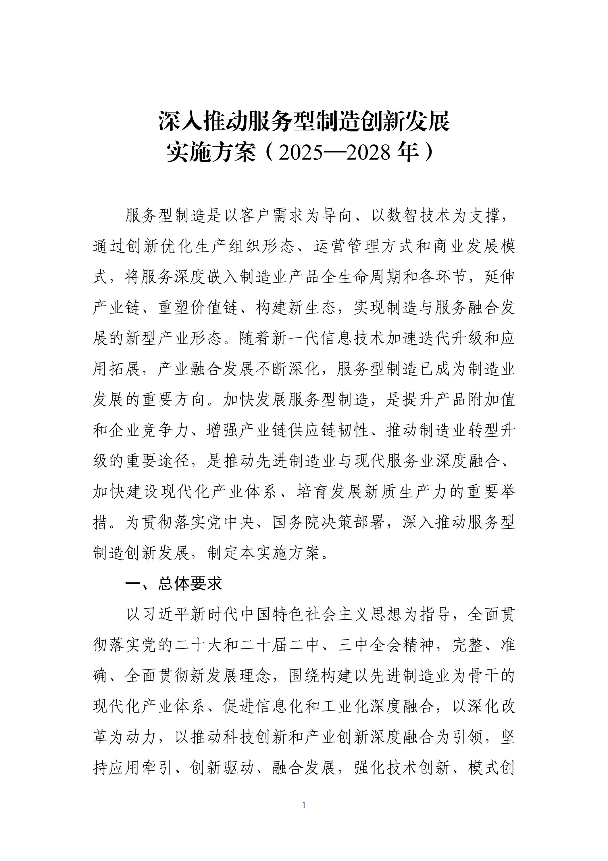 现将《深入推动服务型制造创新发展实施方案(2025—2028年)》印发给你们,请结合实际认真抓好落实。